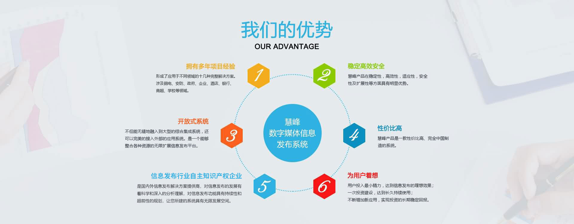 公司本著互惠互利,誠(chéng)實(shí)信用的原則,真誠(chéng)面對(duì)用戶(hù),并愿與社會(huì)各界展開(kāi)廣泛的合作。 公司現(xiàn)已是國(guó)內(nèi)的數(shù)字媒體信息發(fā)布系統(tǒng)解決方案提供商,產(chǎn)品涉及大中型企業(yè)、商業(yè)地產(chǎn)、各級(jí)黨政機(jī)關(guān)、軍隊(duì)、司法、信息通信、金融、醫(yī)療、教育、能源交通、公用事業(yè)領(lǐng)域。