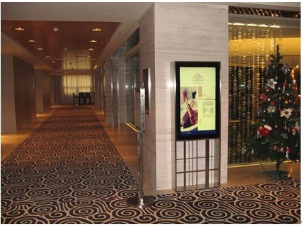 2009年,慧峰WiseDisplay信息發(fā)布系統(tǒng)在該酒店成功應(yīng)用。酒店大堂安裝42寸豎屏展板,發(fā)布酒店宣傳信息、房?jī)r(jià)等;在各會(huì)議室和宴會(huì)廳門(mén)口安裝1臺(tái)17寸液晶顯示器,發(fā)布會(huì)議信息;在中餐廳和西餐廳門(mén)口安裝42寸液晶電視;在每層電梯廳出口位置安裝42寸豎屏展板,發(fā)布酒店宣傳信息。