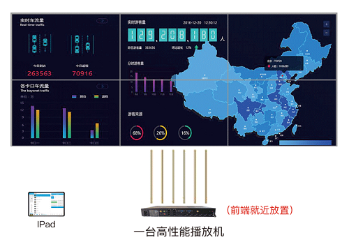 系統(tǒng)建設(shè)成本低:設(shè)備數(shù)量少,就一臺(tái)高性能播放機(jī),易安裝易維護(hù),通過(guò)數(shù)字化系統(tǒng)進(jìn)行軟拼接。
