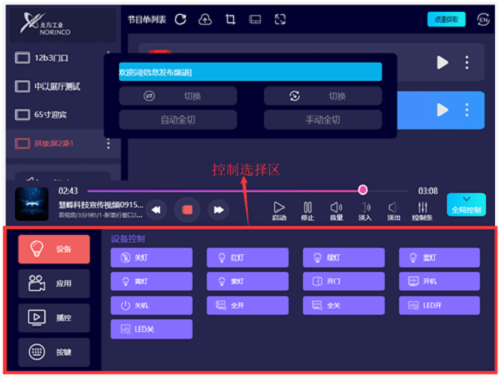 手動(dòng)切換:選擇節(jié)目單后,點(diǎn)擊手動(dòng)切換即當(dāng)前的節(jié)目單進(jìn)入手動(dòng)播放模式,點(diǎn)擊任意一條節(jié)目啟動(dòng)后即可以播放當(dāng)前的節(jié)目。
