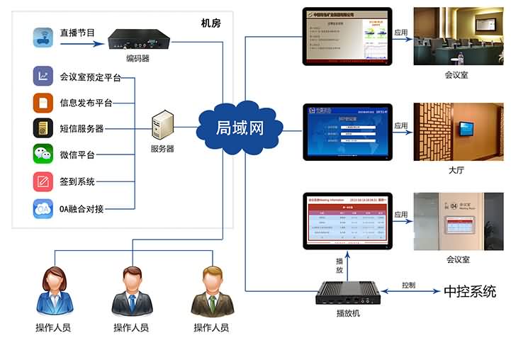 慧峰會議預(yù)約管理系統(tǒng)采用B/S結(jié)構(gòu),用戶通過網(wǎng)絡(luò)瀏覽器就可以直接使用和隨時(shí)了解每個(gè)會議室的當(dāng)前狀態(tài)和預(yù)定情況,提高會議室的使用率,包括:用戶管理、會議室管理、會議預(yù)約、會議統(tǒng)計(jì)與分析模塊、集成中控管理模塊、會議通知與顯示模塊等幾大部分。