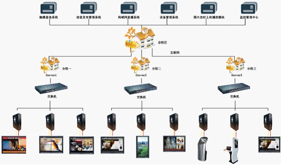 全面分析現(xiàn)有條件,使本系統(tǒng)充分滿足實際應用需要;不但可以播放學校各樓層信息、緊急通知還可以對正在進行的活動進行直播; 采用開放式結構,方便地實現(xiàn)進一步的升級以適應未來的需求擴展;