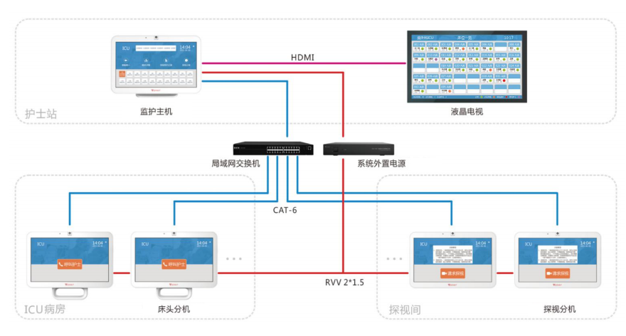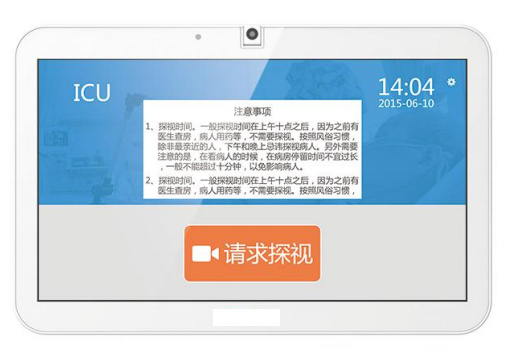 重癥監(jiān)護(hù)病房(ICU)主要用于急危重癥患者的收治搶救和監(jiān)測治療,出于對病患院感風(fēng)險(xiǎn)、消毒隔離控制以治療需要等因素考慮,通常會嚴(yán)格限制患者與家屬的探視方式與時(shí)間。為此通過配備專業(yè)視頻設(shè)備進(jìn)行隔離探視,能效避免感染的同時(shí),增加探視時(shí)間,拉近親人間的距離。